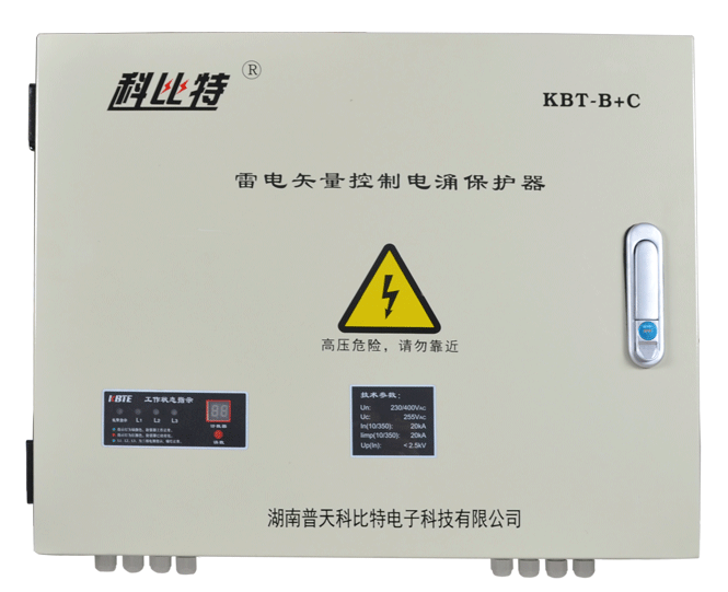 KBT-B+C雷电矢量控制电涌保护器是依据YD/T1235.1-2002《通信局(站)低压配电系统用电涌保护器技术要求》和GBl8802. 1-2011《低压配电系统的电涌保护器(SPD)第一部分:性能要求和试验方法》标准设计制造,内部关键器件均采用优质产品,具有防水防尘、防爆阻燃、结构合理、性能可靠、响应迅速、雷电通流量大、漏流小等特点,同时具备劣化指示、电光告警、雷击次数记录、远程告警干点输出等功能,使用时必须与配电系统整体功率相匹配,最大功率应不超过10KW。