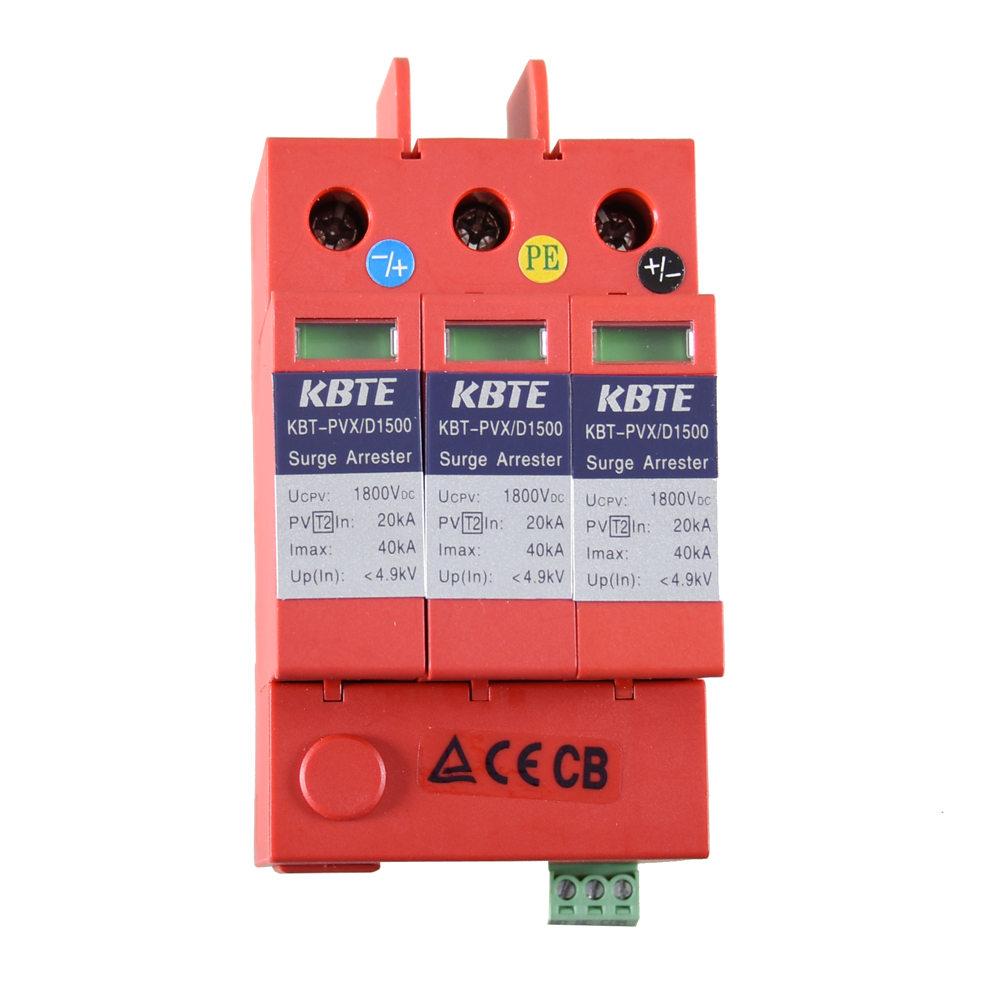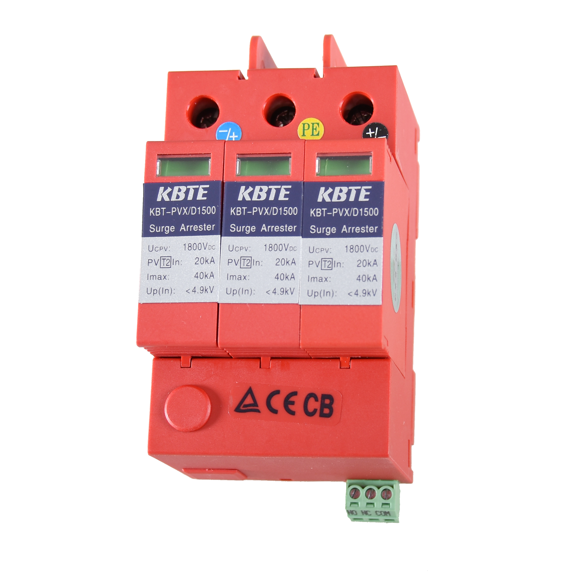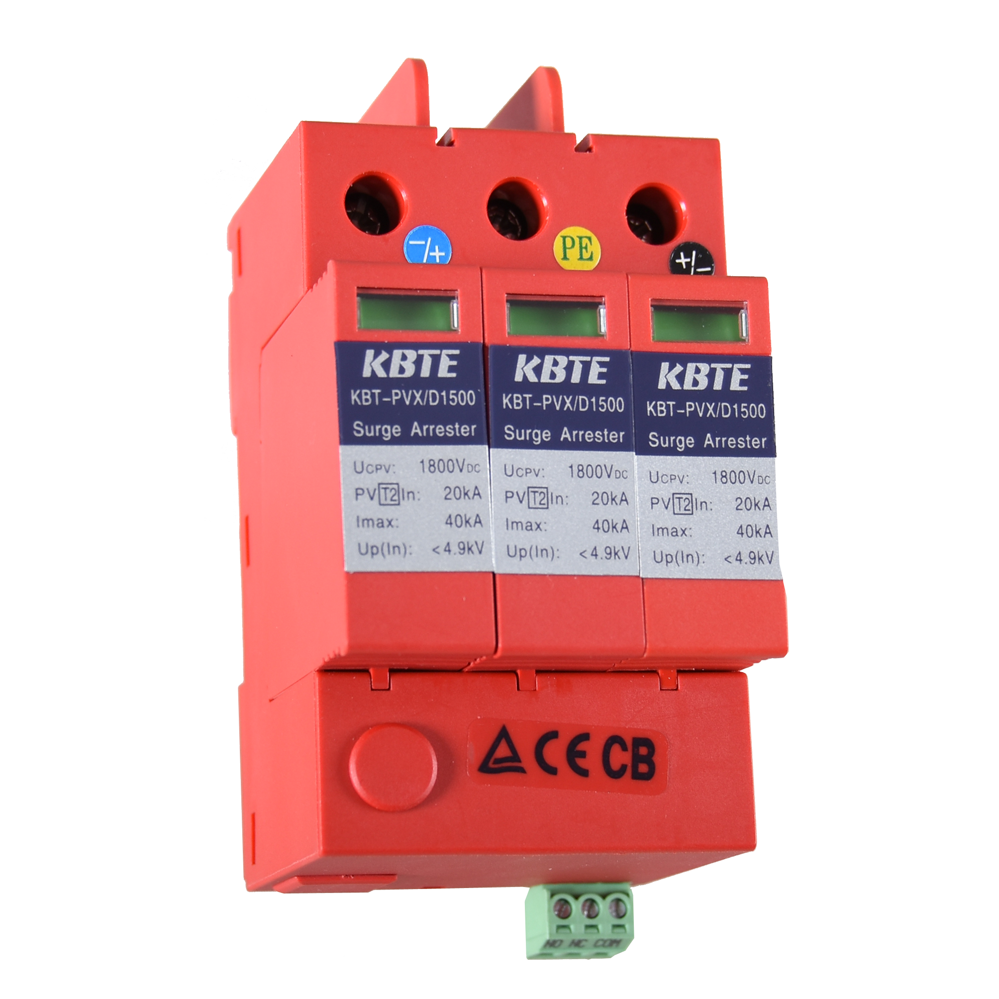 KBT-PVX/D系列太阳能光伏专用直流电涌保护器适用于110~1000V直流电源系统的防雷及过电压保护。主要用于太阳能光伏发电系统等的电涌保护,并联安装,不影响原系统的正常工作。模块化设计,标准导轨安装。有劣化显示窗口,正常时为绿色窗口,损坏时自动转换为红色窗口。可选遥信告警装置,利于远程监控。节能环保、安装简单、方便,可插拔更换防雷模块,无须特殊维护。
